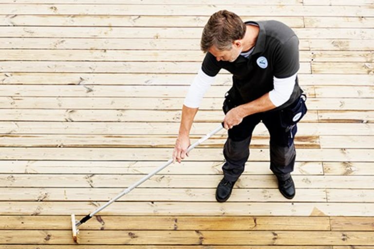El mantenimiento se realiza mediante técnicas especializadas que incluyen limpieza profunda, eliminación de residuos, preparación correcta de la superficie y la aplicación de productos específicos para exterior. Estos productos permiten que la madera respire, recuperan su tono natural y crean una capa de protección que ayuda a reducir la absorción de humedad, minimizar el agrietamiento y prolongar el buen estado del deck.
