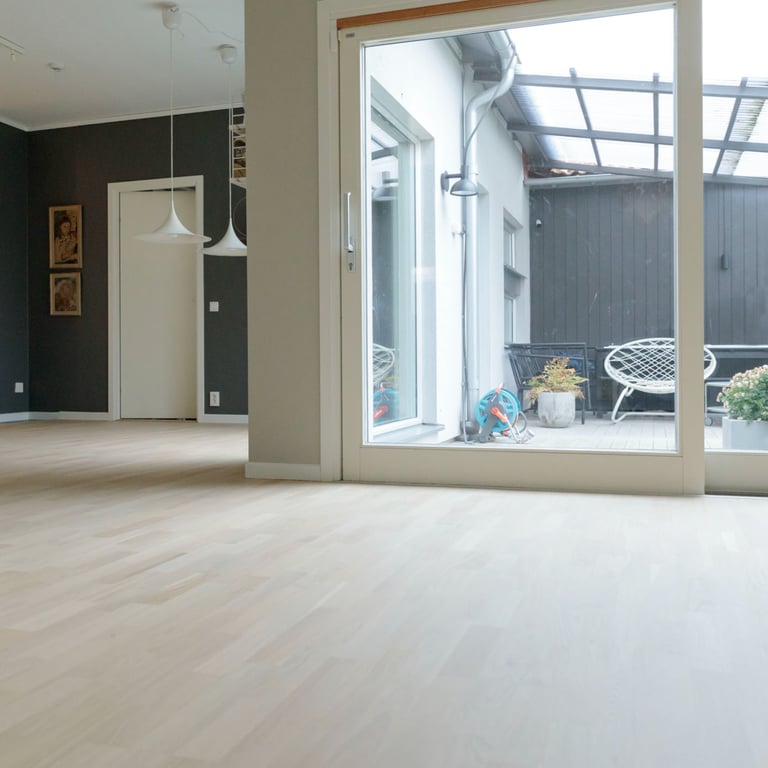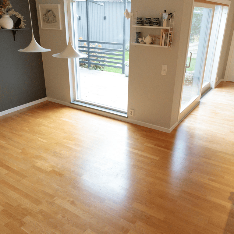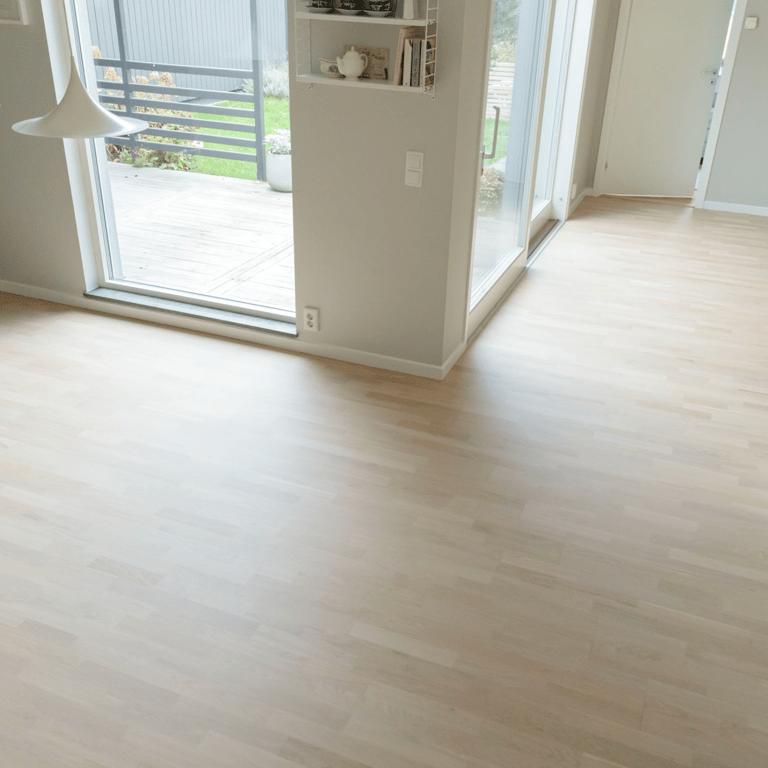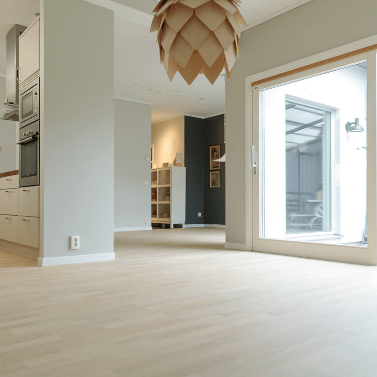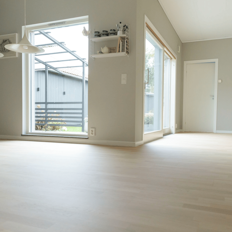 Una vez finalizada, la transformación fue notable. El piso renovado irradiaba ahora un encanto fresco y contemporáneo que realzaba toda la zona de estar. Esta exitosa renovación no solo mejoró el atractivo visual de la cocina y el salón, sino que también subrayó el compromiso de los propietarios con un estilo de vida sostenible. Al optar por renovar en lugar de sustituir, se aseguraron de que el piso de roble blanco siguiera siendo una característica destacada de esta moderna vivienda durante muchos años, respetando al mismo tiempo los principios de sostenibilidad.