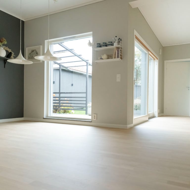 El proceso de renovación se planificó meticulosamente con la experiencia de un Profesional Certificado por Bona, Skånes Golvhantverk, lo que proporcionó a los propietarios confianza y tranquilidad durante todo el proyecto. Se aplicó Bona Natural Prime para realzar la belleza natural de la madera, seguido de Bona Traffic HD RAW como capa final para mantener su aspecto orgánico y ofrecer una gran durabilidad y protección. Estos productos no solo solucionaron los arañazos y redujeron el tono ámbar, sino que también iluminaron el espacio, resaltando el veteado natural y la elegancia del piso en armonía con el estilo moderno.