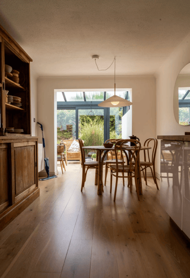 Alice Collyer estaba decidida a renovar el piso de su casa, pero al principio se enfrentó al reto de restaurar un piso de roble de 6 mm mal tratado que no había resistido las exigencias de su ajetreada vida doméstica. El piso no solo era antiestético, sino que también presentaba problemas de resistencia al deslizamiento y mostraba signos de desgaste prematuro. Comprometida tanto con restaurar el antiguo esplendor del piso como con adherirse a prácticas de renovación ecológicas, Alice se embarcó en la búsqueda de soluciones que se integraran a la perfección con su decoración de inspiración escandinava y que, al mismo tiempo, garantizaran una durabilidad a largo plazo.